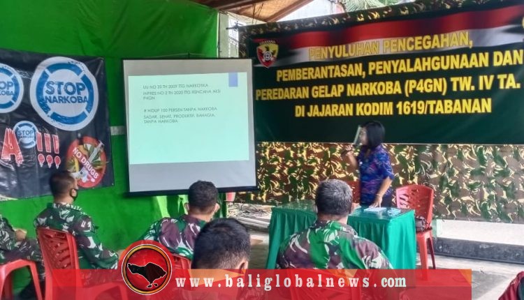 Pihaknya juga memberilan penyuluhan dan sosialisasi bahaya narkoba kepada Personel Militer dan PNS Kodim 1619/Tabanan bersama Pemerintah Daerah dan Polres Tabanan.