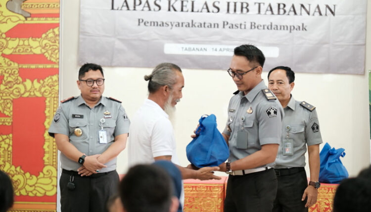Lembaga Pemasyarakatan (Lapas) Kelas IIB Tabanan dan Paguyuban Ibu-ibu Pemasyarakatan (Pipas) Cabang Lapas Tabanan menggelar bakti sosial (baksos) dengan membagikan sembako kepada warga yang membutuhkan pada Senin (14/4/2025). Kegiatan ini sekaligus memeriahkan Hari Bakti Pemasyarakatan (HBP) ke-61.