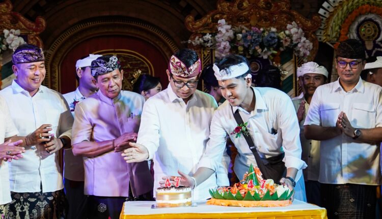 Anggota DPRD Kabupaten Badung I Wayan Sandra mendampingi Bupati Badung I Wayan Adi Arnawa menghadiri perayaan HUT ke-47 ST Eka Chanti, Banjar Beluran, Kerobokan Kaja, Kecamatan Kuta Utara, Badung, pada Selasa (20/5/2025).