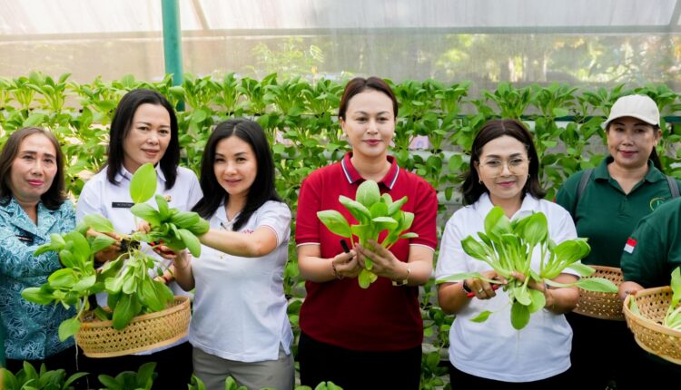 Ketua TP PKK Badung Nyonya Adi Arnawa panen sayur pokcoy sekaligus menyerahkan alat untuk pengolahan kue secara simbolis kepada TP PKK Desa Jagapati, Kecamatan Abiansemal. Panen sayur pokcoy hidroponik dilaksanakan di Balai Penyuluhan Pertanian (BPP), Kecamatan Abiansemal, pada Rabu (18/6/2025).