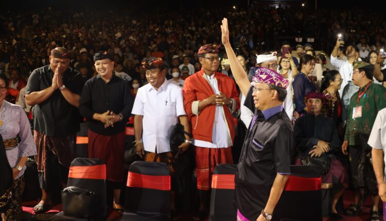 Gubernur Bali Wayan Koster didampingi istri, Ny. Koster, nampak di antara ribuan penonton drama gong lawas paguyuban peduli seni, Drama Gong Lawas Padsmagol Provinsi Bali, di Panggung Terbuka Ardha Candra, Taman Budaya Art Center Provinsi Bali, pada Rabu (2/7/2025).