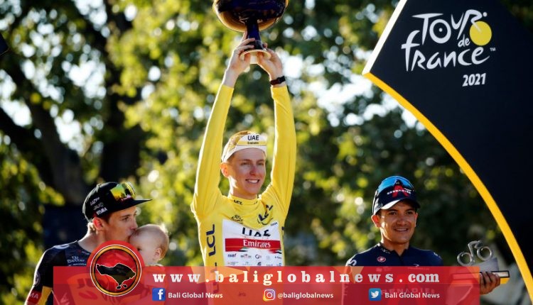 Tadej Pogacar pada Minggu menjadi pebalap sepeda termuda yang menjuarai Tour de France dua kali secara beruntun.