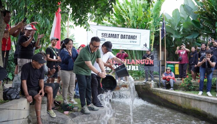 Walikota Denpasar I Gusti Ngurah Jaya Negara buka lomba mancing yang diselenggarakan ST Dharma Werdhi (STDW), Banjar Kebonkuri Lukluk, Kelurahan Kesiman, ditandai dengan menebar ikan lele di Tukad Lilaulangun, pada Minggu (6/7/2025).
