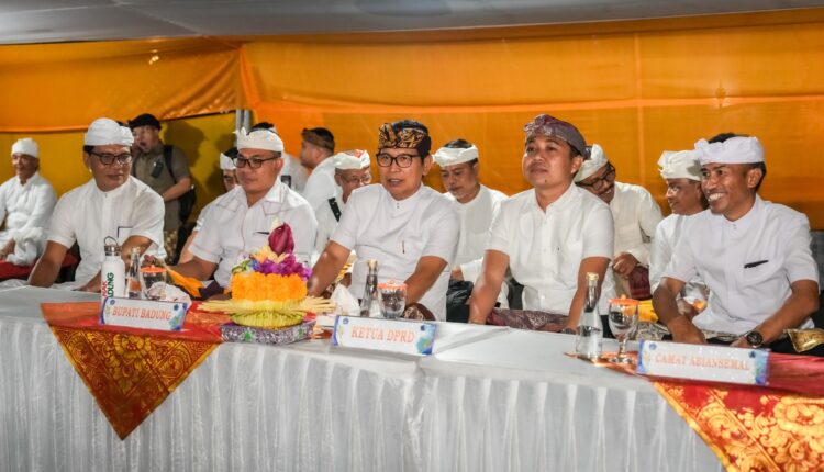 Anggota DPRD Kabupaten Badung I Putu Dendy Astra Wijaya mendampingi Bupati Badung I Wayan Adi Arnawa menghadiri karya atma wedana (nyekah masal), potong gigi/metatah dan mepetik yang diikuti oleh 21 jumlah sawa di Banjar Tegal Kuning, Desa Bongkasa Pertiwi, Kecamatan Abiansemal, Kabupaten Badung, pada Kamis (3/7/2025).