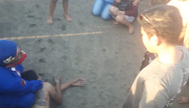 Dengan menggunakan papan sorfing petugas dapat menyelamatkan korban dari dalam laut. Sesampainya didarat korban langsung dibawa ke rumah sakit menggunakan mobil pribadi.