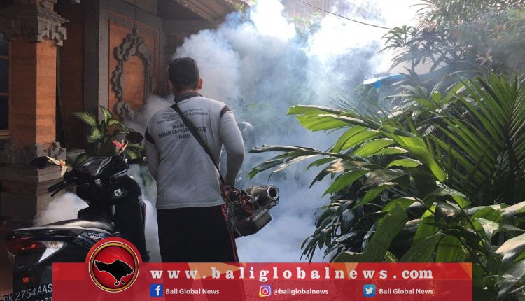 Kelurahan Panjer melakukan fogging di Jalan Tukad Irawadi, No. 42 B, Lingkungan Celuk Panjer dan sekitarnya Sabtu (16/4) untuk mengantisipasi dan meningkatkan kewaspadaan dini terhadap peningkatan kasus penyakit demam berdarah dengue (DBD).