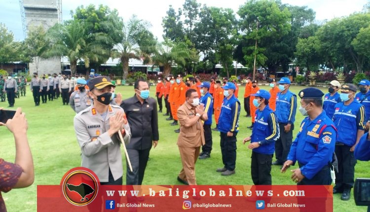Kapolres Buleleng, AKBP Andrian Pramudianto, bertindak selaku pimpinan apel kesiapsiagaan Antisipasi Potensi Dampak La Nina di Kabupaten Buleleng di Lapangan Ngurah Rai (Taman Kota) Singaraja pada Selasa (30/11).