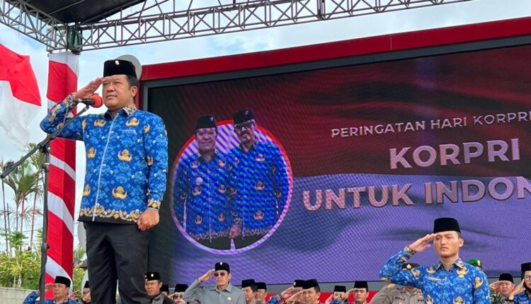 Bupati Bangli Sang Nyoman Sedana Arta memimpin upacara peringatan HUT ke-53 Korpri dan HUT ke-79 PGRI yang dirangkaikan dengan Peringatan Hari Kesehatan Nasional yang ke-60 di Alun-alun Bangli pada Jumat (29/11/2024).