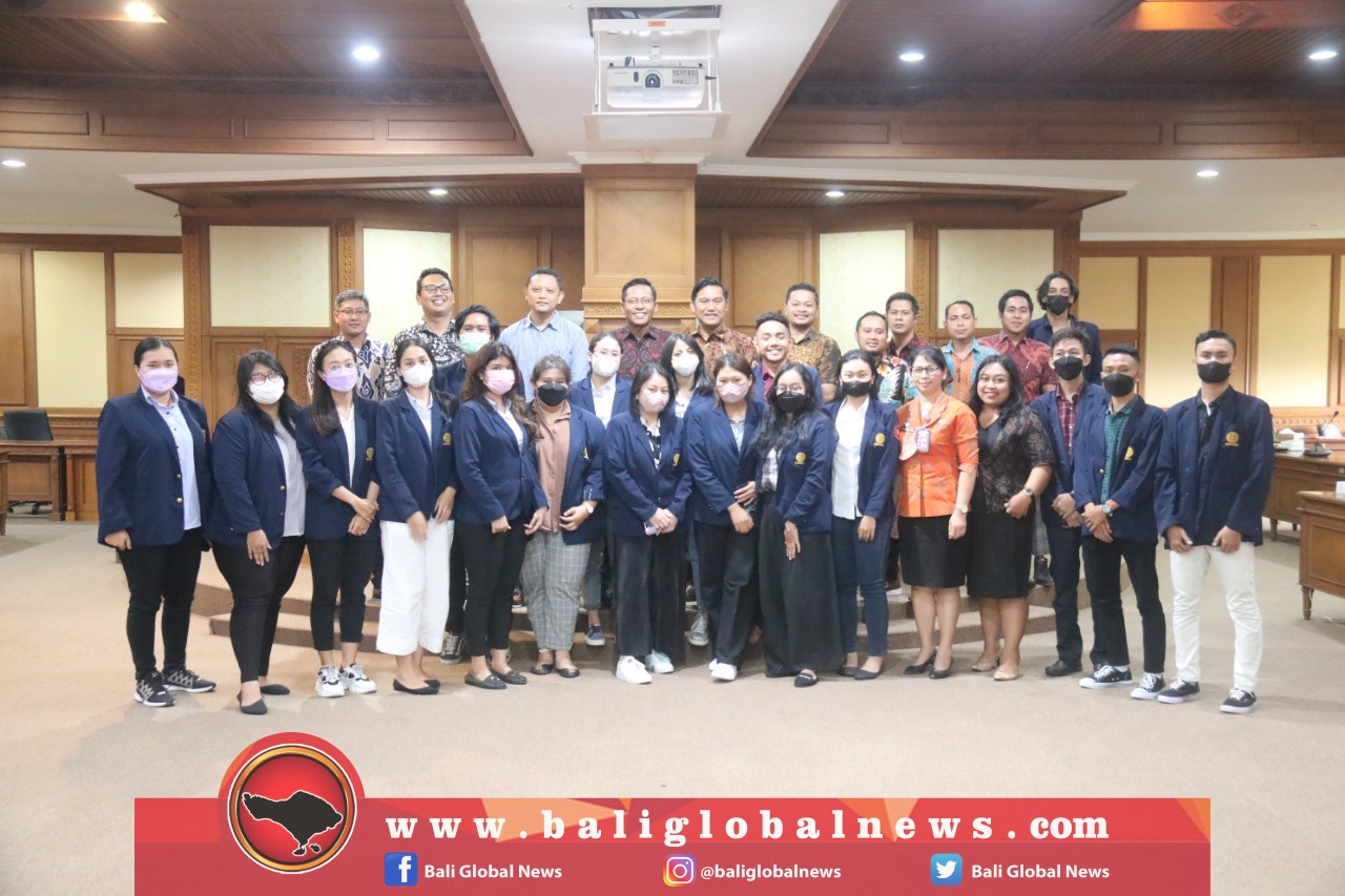 Ketua Komisi I Dewan Perwakilan Rakyat Daerah (DPRD) Kabupaten Badung,, Made Ponda Wirawan, menerima audiensi Lembaga Bantuan Hukum (LBH) Lingkar Karma Nusantara (LKN) yang mengantarkan belasan mahasiswa Fakultas hukum Unud dalam program nahasiswa BKM (belajar kampus merdeka). Ponda Wirawan menerima mereka di Ruang Sidang Madya Gosana, Sekretariat DPRD Puspem Badung pada Jumat (1/7).