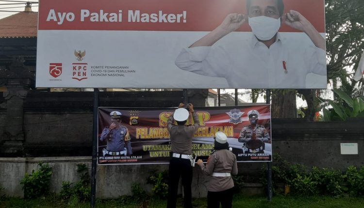 Selain memberikan penerangan pendisiplinan adaptasi kebiasaan baru, mereka juga memasang spanduk di simpang Polres Badung, sebagai wujud kepedulian hidup sehat, di tengah Pandemi covid -19.