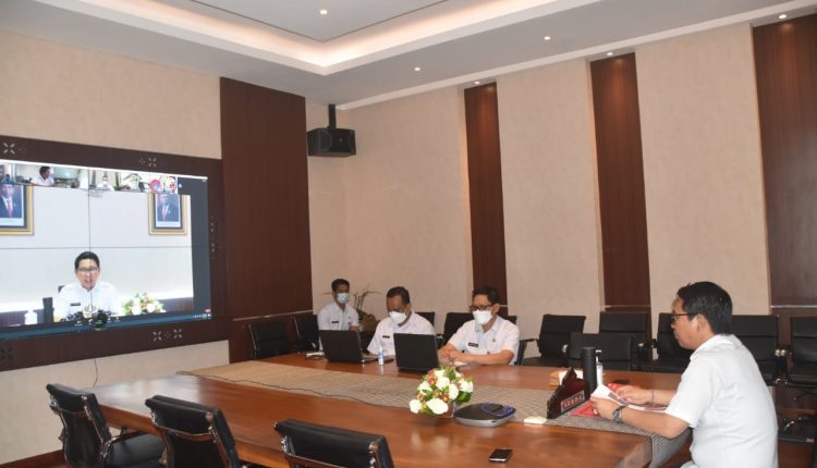 Sekretaris Daerah Kabupaten Badung, I Wayan Adi Arnawa, memimpin rapat persiapan Kabupaten Badung mengikuti Kompetisi Inovasi Pelayanan Publik Tahun 2021, Survei Kepatuhan Pelayanan Publik tahun 2021 dan Sistem Informasi Pelayanan Publik Nasional dari Ruang Rapat Sekda Puspem Badung, Rabu (24/3).