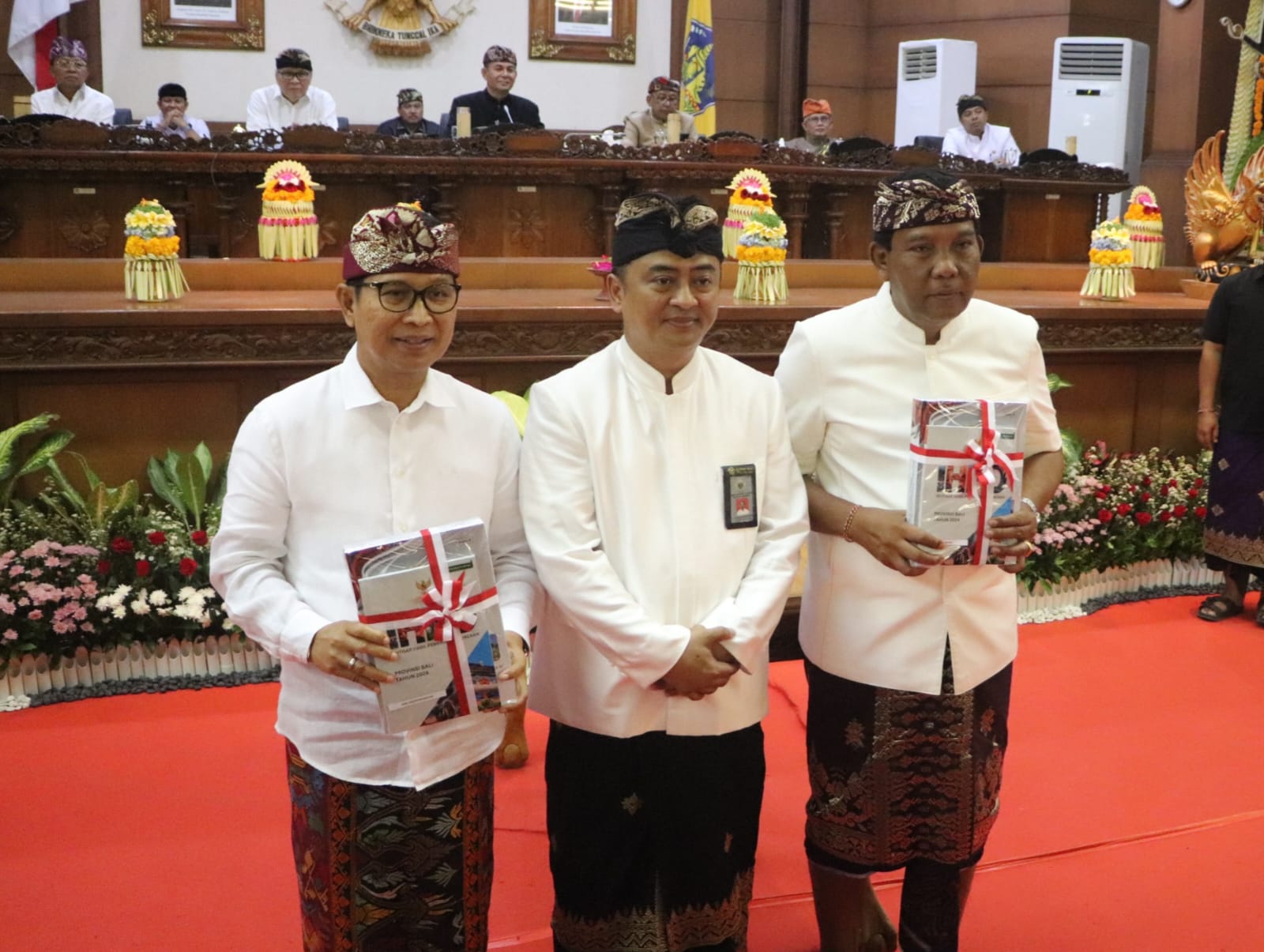 Penyerahan LHP BPK kepada kabupaten/kota se-Bali dilaksanakan usai Sidang Paripurna DPRD Bali dengan agenda penyerahan Laporan LHP BPK RI atas LKPD Provinsi Bali TA 2024 di Ruang Sidang Utama, DPRD Provinsi Bali, pada Kamis (5/6/2025). Sidang Paripurna yang dibuka Ketua DPRD Bali Dewa Made Mahayadnya tersebut dihadiri Anggota II BPK RI Daniel Lumban Tobing, Gubernur Bali Wayan Koster, Wakil Gubernur Bali I Nyoman Giri Prasta, Forkopimda Bali, bupati/walikota se-Bali. Turut mendampingi Bupati Wayan Adi Arnawa, Wabup Bagus Alit Sucipta, Sekda Surya Suamba dan Inspektur Badung Luh Suryaniti.