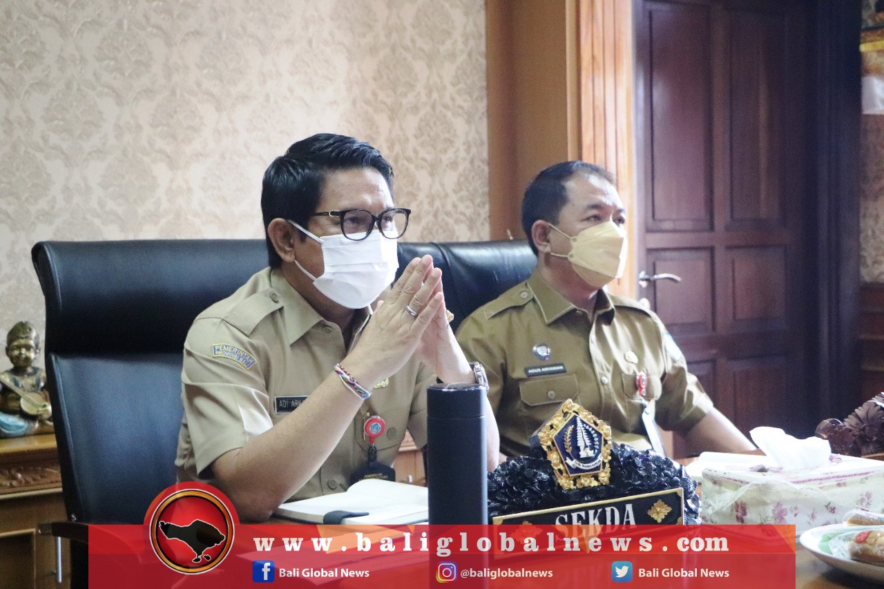Sekretaris Daerah Kabupaten Badung, I Wayan Adi Arnawa, didampingi Kepala Dinas Penanaman Modal dan Pelayanan Terpadu Satu Pintu (DPMPTSP), I Made Agus Aryawan, mengikuti penilaian uji petik Pelayanan Terpadu Satu Pintu (PTSP) dan Percepatan Pelaksanaan Berusaha (PPB) secara virtual di Ruang Rapat Kantor DPMPTSP Puspem Badung, Senin (12/7).