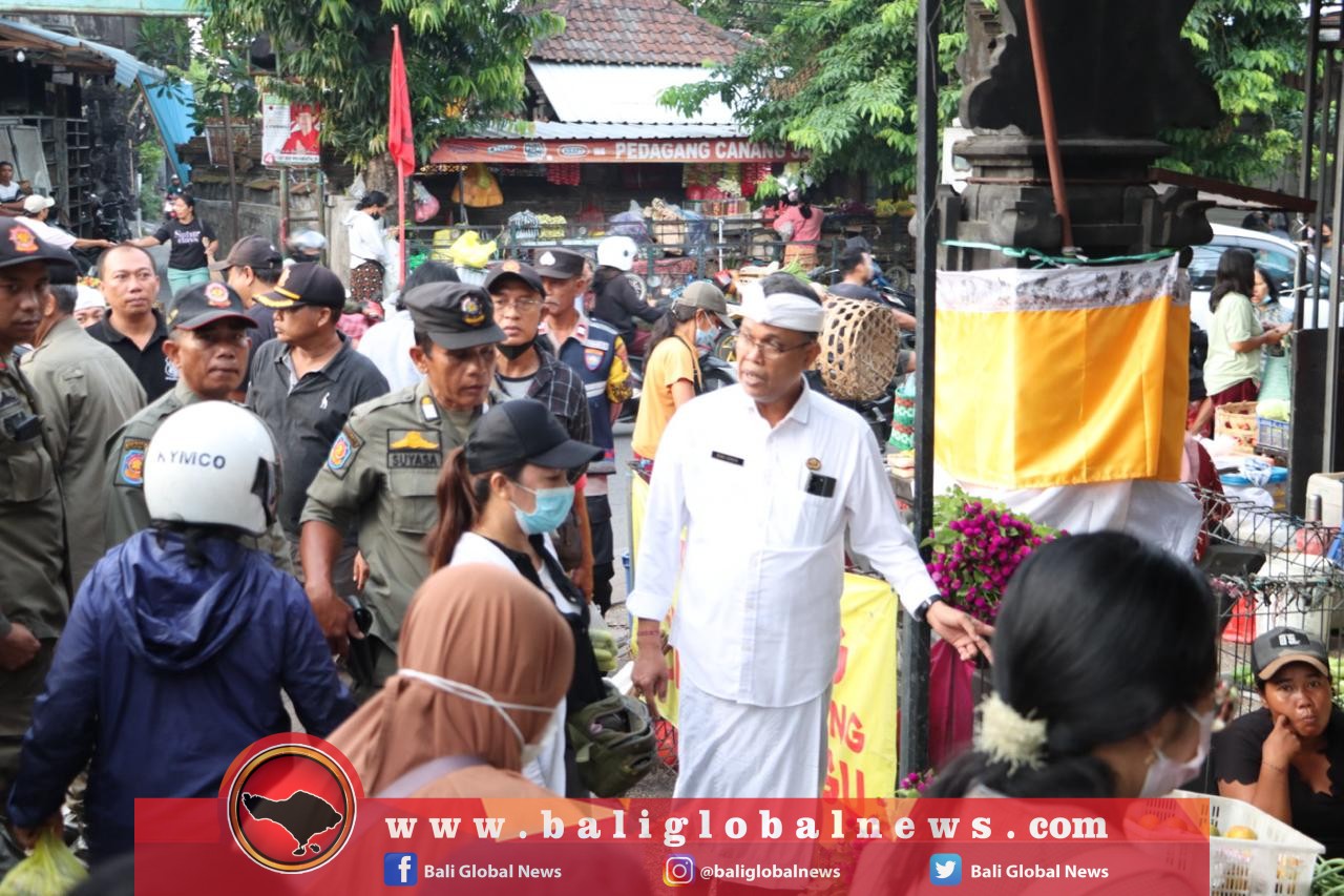 Kedatangan petugas Satpol PP yang juga melibatkan tim gabungan dari Desa Dauh Puri Kelod menindak tegas pedagang pasar tumpah yang membandel menggelar barang dagangannya diatas trotoar dan menggunakan bahu jalan.