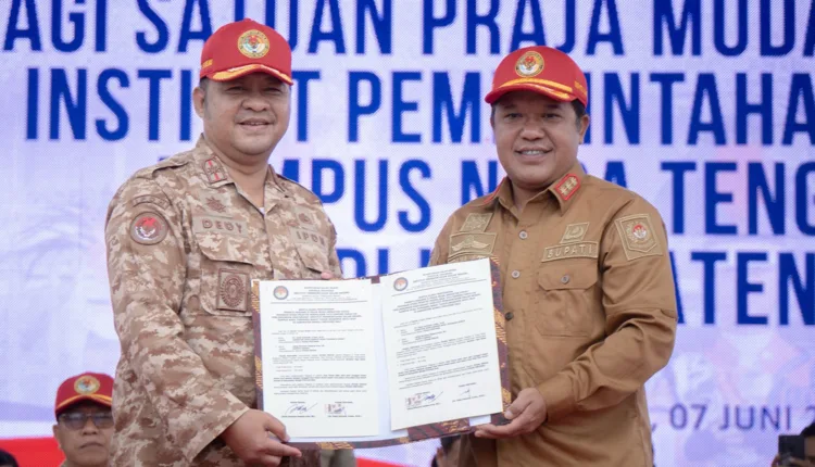 Bupati Bangli, Sang Nyoman Sedana Arta, menjadi inspektur upacara pembukaan magang II Satuan Praja Muda Angkatan XXXIII Institut Pemerintah Dalam Negeri Kampus Nusa Tenggara Barat Kabupaten Bangli di Alun-alun, Bangli, pada Jumat (7/6/2024).