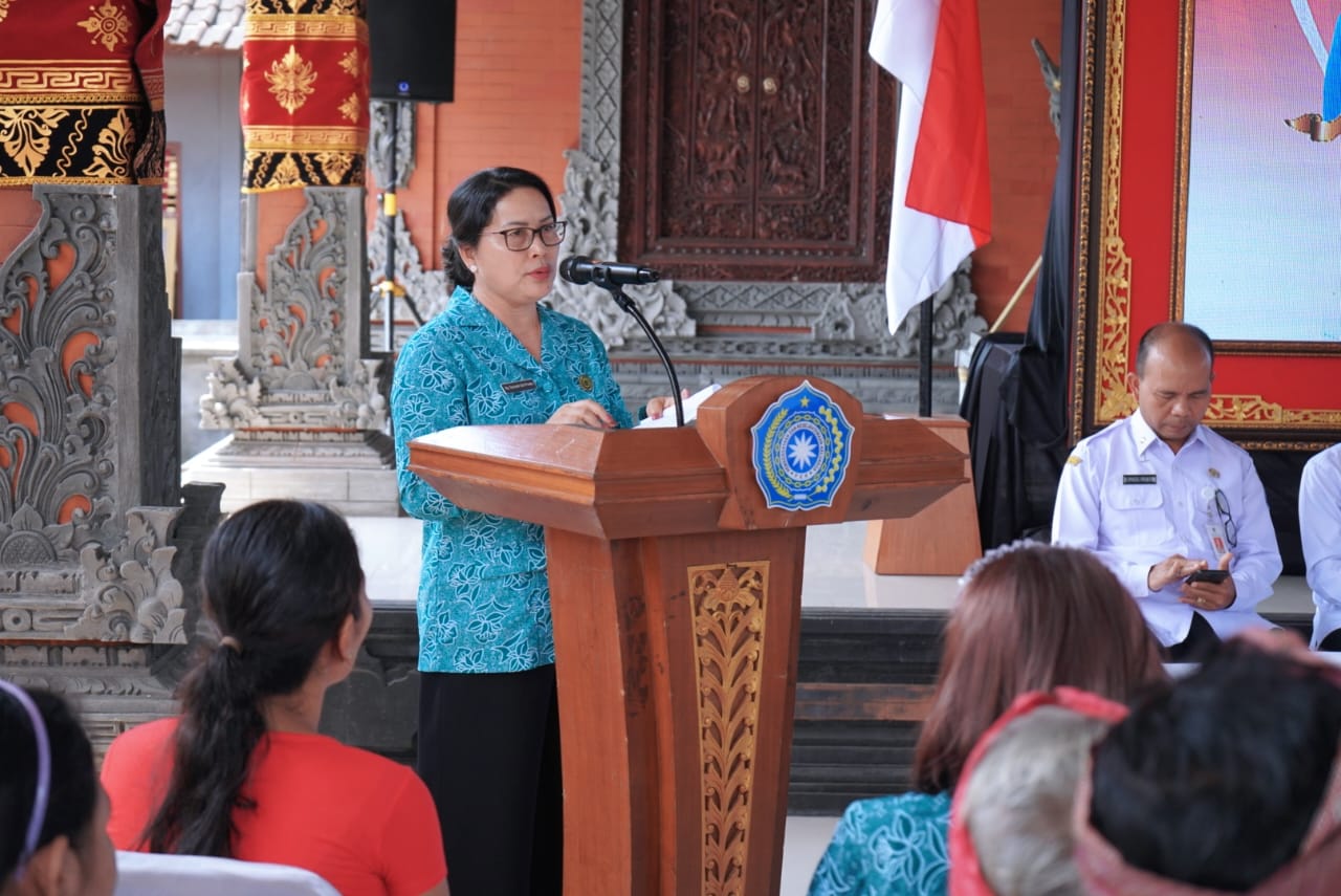 Bersinergi dengan sejumlah organisasi perangkat daerah (OPD) serta Ikatan Bidan Indonesia (IBI), Sekretaris TP PKK Provinsi Bali Ny. Giri Prasta menyalurkan bantuan dalam kegiatan Aksi Sosial TP PKK Menyapa dan Berbagi yang dipusatkan di Wantilan Balai Banjar Negari, Desa Negari, Kecamatan Banjarangkan, Klungkung, pada Rabu (22/10/2025).