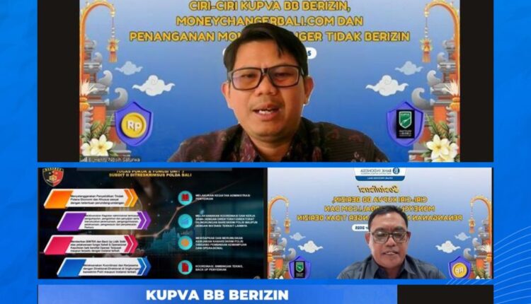Sementara perwakilan dari Polda Bali dari Panit 1 Unit 3 Subdit II Ditreskrimsus Polda Bali I Gede Ari Suryawan menjelaskan penanganan dan penindakan money changer tidak berizin, yang dilakukan sesuai kewenangan dalam UU P2SK dan melibatkan kerja sama lintas instansi.