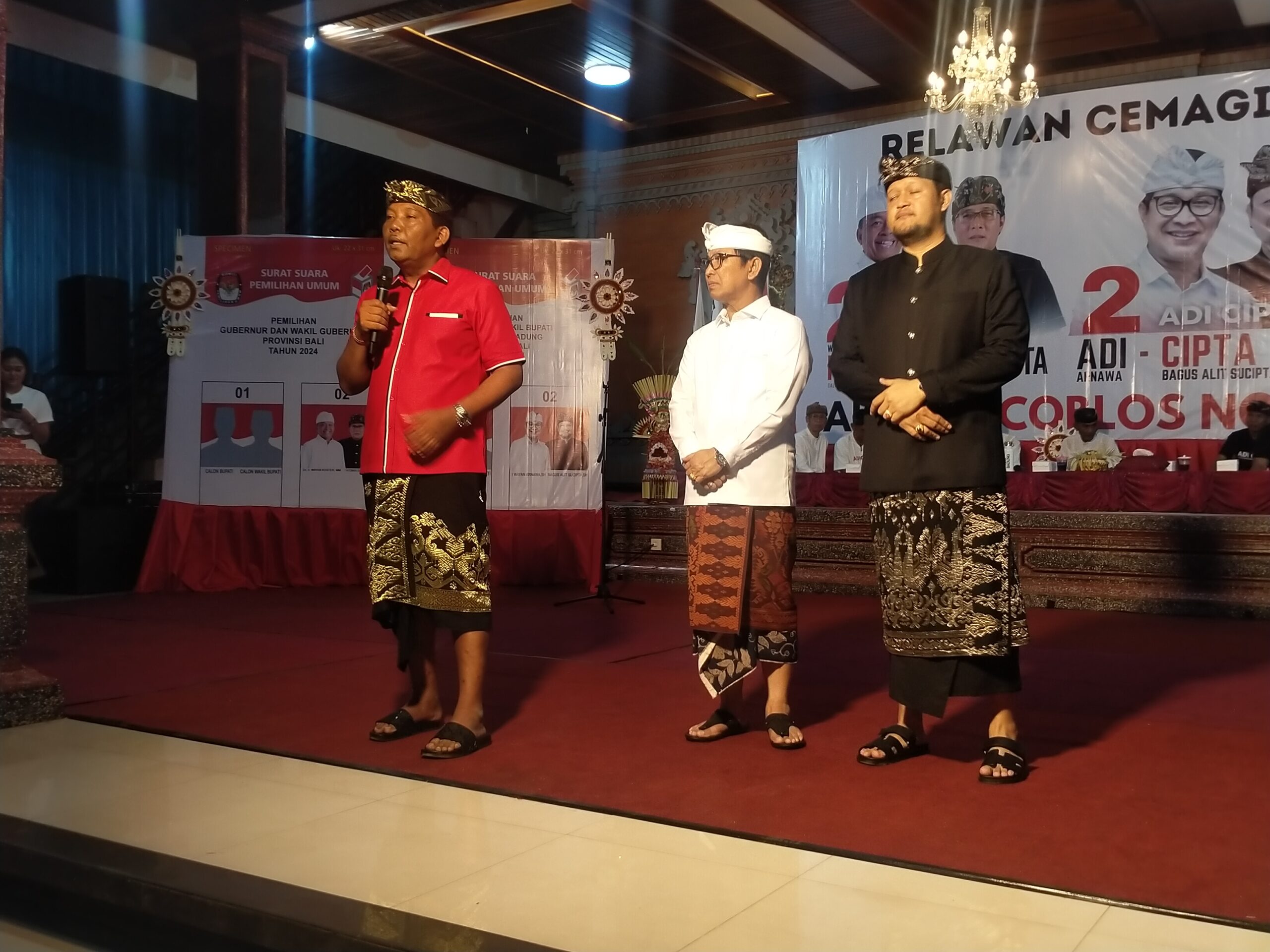 Turut hadir Ketua Tim Pemenangan Adicipta I Gusti Anom Gumanti, I Wayan Regep, Edy Sanjaya dan I Wayan Bawa.