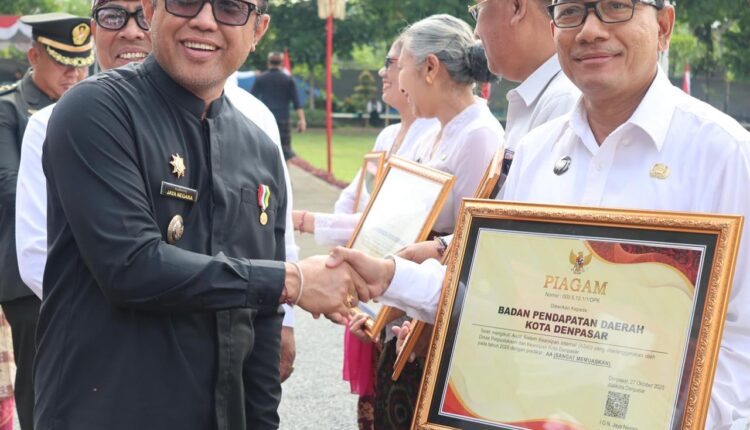 Badan Pendapatan Daerah (Bapenda) Kota Denpasar kembali menorehkan prestasi gemilang dengan meraih penghargaan Audit Sistem Kearsipan Internal (ASKI) Tahun 2025. Penghargaan tersebut diserahkan oleh Walikota Denpasar I Gusti Ngurah Jaya Negara kepada Kepala Bapenda Kota Denpasar I Gusti Ngurah Eddy Mulya usai apel peringatan Hari Pahlawan di Lapangan Lumintang Denpasar, pada Senin (10/11/2025).