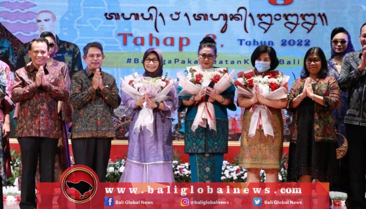 Sebelum melakukan kunjungan ke stan pameran IKM Bali Bangkut, Ny. Koster juga mengajak Ketua Dekranasda Gorontalo menyaksikan fashion show serangkaian pembukaan IKM Bali Bangkit tahap ke-8 di Gedung Ksirarnawa, Art Center. (bgn003) 22092904