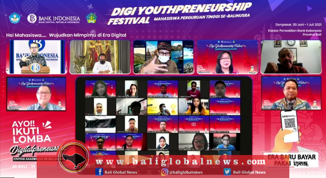 Kantor Perwakilan Bank Indonesia (BI) Provinsi Bali bekerjasama dengan LLDIKTI Wilayah VIII menyelenggarakan rangkaian “Digi Youthpreneurship Festival” kepada 1.500 mahasiswa dan mahasiswa di Pulau Dewata, agar bisa menjadi motor penggerak perubahan. Dengan melihat peluang dan potensi diri untuk membangun impiannya di era digital.