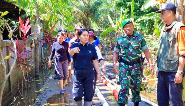 Ketua Badan Koordinasi Organisasi Wanita (BKOW) Provinsi Bali Ny. Giri Prasta meninjau sekaligus kunjungan kerja ke masyarakat terdampak banjir di Banjar Tengading, Desa Antiga, Kecamatan Manggis, Kabupaten Karangasem, pada Jumat (3/10/2025).