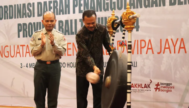 Sekretaris Daerah (Sekda) Provinsi Bali, Dewa Made Indra, membuka secara resmi Rapat Koordinasi Daerah Penanggulangan Bencana Provinsi Bali Tahun 2024 yang mengangkat Tema “Penguatan Resiliensi Bali Dwipa Jaya” di Plagoo Holiday Hotel, Jumat (3/5/2024)