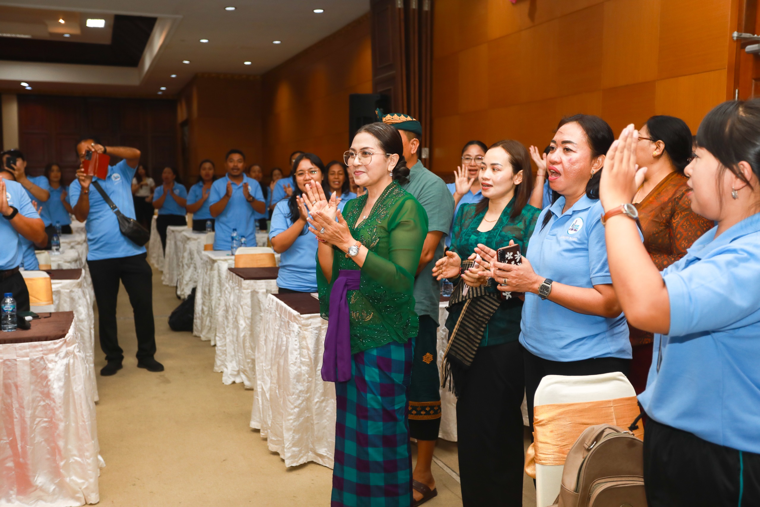 Bunda PAUD Kabupaten Badung Ny. Adi Arnawa menghadiri sekaligus memberikan apresiasi terhadap pelaksanaan kegiatan pelatihan pencegahan stunting di lingkungan satuan pendidikan bagi pendidik dan tenaga kependidikan PAUD di Kabupaten Badung Tahun 2025 yang digelar di Hotel Made pada Kamis (16/10/2025).