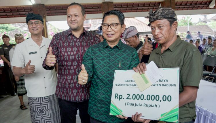 Bupati Badung I Wayan Adi Arnawa bersama Wakil Bupati Bagus Alit Sucipta kembali menyerahkan secara simbolis bantuan Rp2 juta per kepala keluarga (KK) untuk meringankan beban masyarakat Kabupaten Badung yang beragama Hindu menjelang Hari Raya Galungan dan Kuningan. Kali ini Bupati dan Wabup menyerahkan bantuan untuk warga Kecamatan Mengwi di Balai Serba Guna, Banjar Tengah Gulingan dan warga Kecamatan Kuta Utara di Wantilan Desa Adat Padang Luwih, Dalung, Kuta Utara, pada Selasa (11/11/2025).
