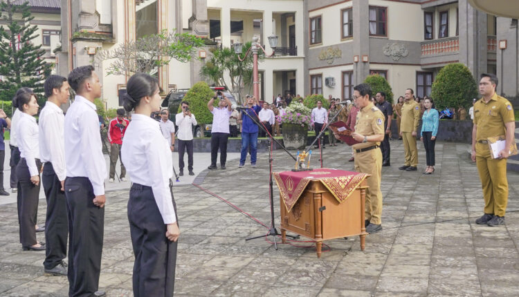Bupati Badung I Wayan Adi Arnawa mengambil sumpah dan melantik 587 orang Calon Pegawai Negeri Sipil (CPNS) dan 4.922 Pegawai Pemerintah Dengan Perjanjian Kerja (PPPK) lingkungan Pemkab Badung di Lapangan Mangupraja Mandala, Puspem Badung, pada Senin (26/5/2025).