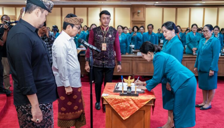 Bupati Badung I Wayan Adi Arnawa menghadiri serah terima jabatan (sertijab) Ketua Tim Penggerak (TP) PKK Badung sekaligus melantik pengurus TP PKK Kabupaten Badung, Ketua Tim Pembina Posyandu serta Ketua Dewan Kerajinan Nasional Daerah (Dekranasda) Kabupaten Badung yang juga dirangkaikan dengan pelantikan pengurus baru untuk masa bakti 2025-2030. Sertijab di Ruang Madya Gosana Lantai III Gedung DPRD Kabupaten Badung pada Kamis (20/3/2025), diawali pembacaan SK Serah Terima Jabatan dan SK Pelantikan Ketua TP PKK oleh Bupati Badung dilanjutkan penandatanganan naskah serah terima jabatan serta naskah pelantikan pengurus lama dan baru.