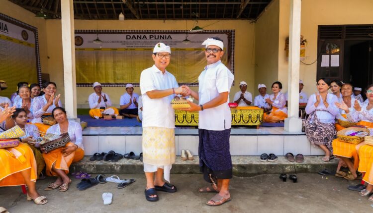 Bupati Badung I Wayan Adi Arnawa didampingi Ketua TP PKK Badung Ny. Adi Arnawa menghadiri sekaligus sembahyang puncak karya piodalan ngenteg linggih, padudusan alit, melaspas, mupuk pedagingan, rsi gana di Pura Pasek Gelgel, Banjar Kembangsari, Desa Blahkiuh, Kecamatan Abiansemal, pada Sabtu (6/9/2025). Sebagai bentuk dukungan pemerintah terhadap pelaksanaan karya tersebut, Bupati menghaturkan dana punia Rp20 juta yang diterima Manggala Karya I Made Puja.