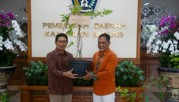 Menyambut HUT ke-16 Ibukota Kabupaten Badung “Mangupura”, Bupati Badung I Wayan Adi Arnawa menerima 116 bibit pohon tanaman dari Bank BPD Bali Cabang Mangupura. Kegiatan ini sebagai wujud sinergi dalam upaya pelestarian lingkungan. Penyerahan bibit tanaman dilakukan oleh Kepala Cabang Bank BPD Bali Cabang Mangupura Ida Bagus Made Surawan di Lobi Kantor Bupati, Puspem Badung, pada Jumat (14/11/2025). Ada 8 jenis tanaman dengan jumlah 116 pohon meliputi bibit pohon badung, tabebuya, tanjung, ketapang kencana, pule, trembesi, bunga bougenvil dan pohon bodhi/ancak.