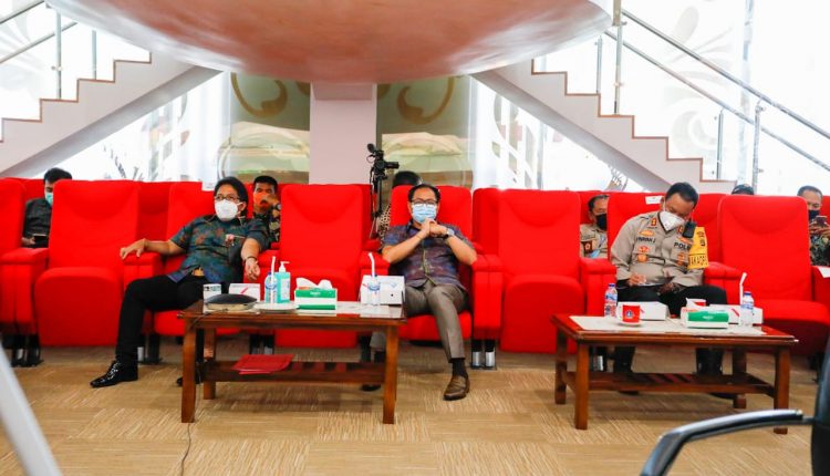 Bupati Badung, I Nyoman Giri Prasta, bersama Wakil Bupati, I Ketut Suiasa; Ketua DPRD Badung, Putu Parwata, beserta Forum Koordinasi Pimpinan Daerah (Forkopimda) Badung, KPU dan Bawaslu Badung kembali mengikuti rapat koordinasi khusus (Rakorsus) terkait penegakan hukum dalam Pilkada Serentak tahun 2020 pada masa pandemi Covid-19 melalui video conference (vidcon) dari Gedung Badung Command Center, Puspem Badung, Jumat (18/9).