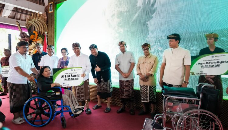 Bupati Badung I Wayan Adi Arnawa didampingi Wakil Bupati Bagus Alit Sucipta meluncurkan Pengembangan Program Subsidi Kredit Usaha Mikro Badung Sejahtera (Sidi Kumbara) dari plafon maksimal kredit Rp25 juta menjadi Rp100 juta di Wantilan Serbaguna Karang Dalem II, Desa Bongkasa Pertiwi, Abiansemal, Sabtu (30/8/2025).