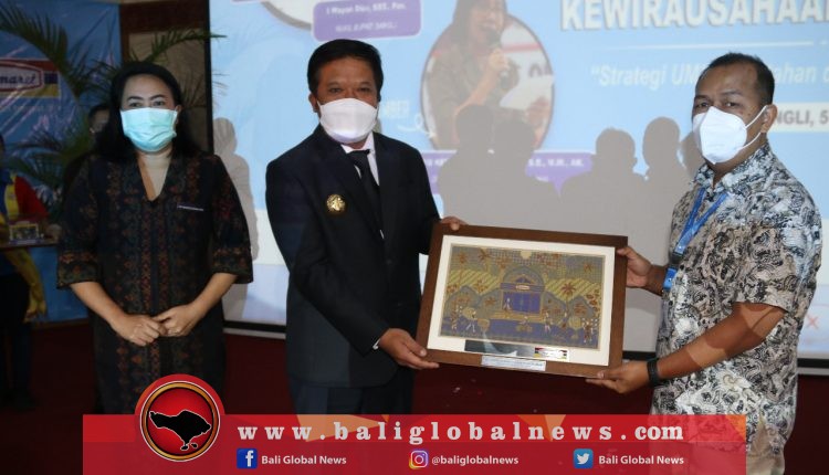 Bupati Bangli, Sang Nyoman Sedana Arta, menghadiri acara pelatihan kewirausahaan mandiri UMKM dengan tema “Strategi UMKM di tengah masa pandemi covid-19” di di Museum Gunung Api Batur, Bangli, pads Selasa (5/20).