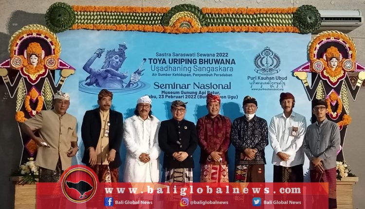 Sementara Ketua Yayasan Puri Kauhan Ubud, Anak Agung Ari Dwipayana, yang juga Staf Khusus Kepresidenan, mengatakan seminar diikuti oleh Ida Dalem Semarapura, penglingsir puri, rektor, aktivis dengan mengambili tema “Toya uriping Bhuwana, usadhaning sangaskara”, air sumber kehidupan, penyembuh peradaban, berlangsung selama satu hari.