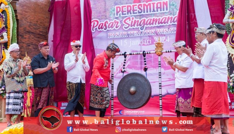 Bupati Bangli, SN Sedana Arta meresmikan Pasar Singamandawa tahap ll (pasar tematik wisata) di Desa Kintamani, Kecamatan Kintamani, Bangli, ditandai dengan memukul gong pada Senin (15/01/2024).