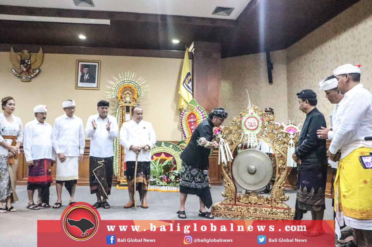 Bupati Badung, I Nyoman Giri Prasta, membuka secara resmi sekaligus memberikan sambutan pada acara Lokasabha ke-1 tahun 2022 Pangeran Tangkas Kori Agung Kabupaten Badung ditandai dengan pemukulan gong di Ruang Kertha Gosana, Puspem Badung, pada Minggu (10/7).