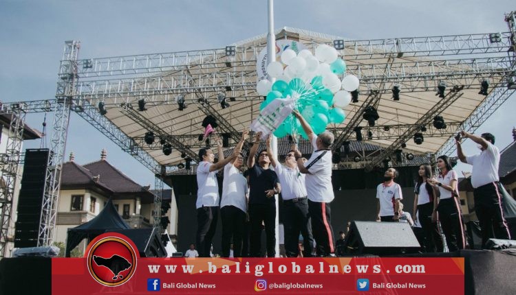 Bupati Badung, I Nyoman Giri Prasta, membuka Pesta Rakyat HUT ke-13 Mangupura yang dirangkaikan dengan Peringatan Hari Kesehatan Nasional Ke-58 di Lapangan Puspem Badung, Mangupraja Mandala, Jumat (11/11/2022). Bupati Giri Prasta didampingi Ketua DPRD Badung Putu Parwata dan Sekda Wayan Adi Arnawa melepaskan balon serta menyerahkan bantuan paket sembako dan kursi roda kepada penyandang disabilitas dan bantuan 100 paket sembako untuk mencegah stunting.