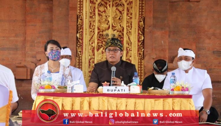 Bupati Badung, I Nyoman Giri Prasta, menghadiri upacara nyekah masal Desa Adat Semanik, Desa Pelaga Kecamatan Petang, Selasa (20/7).