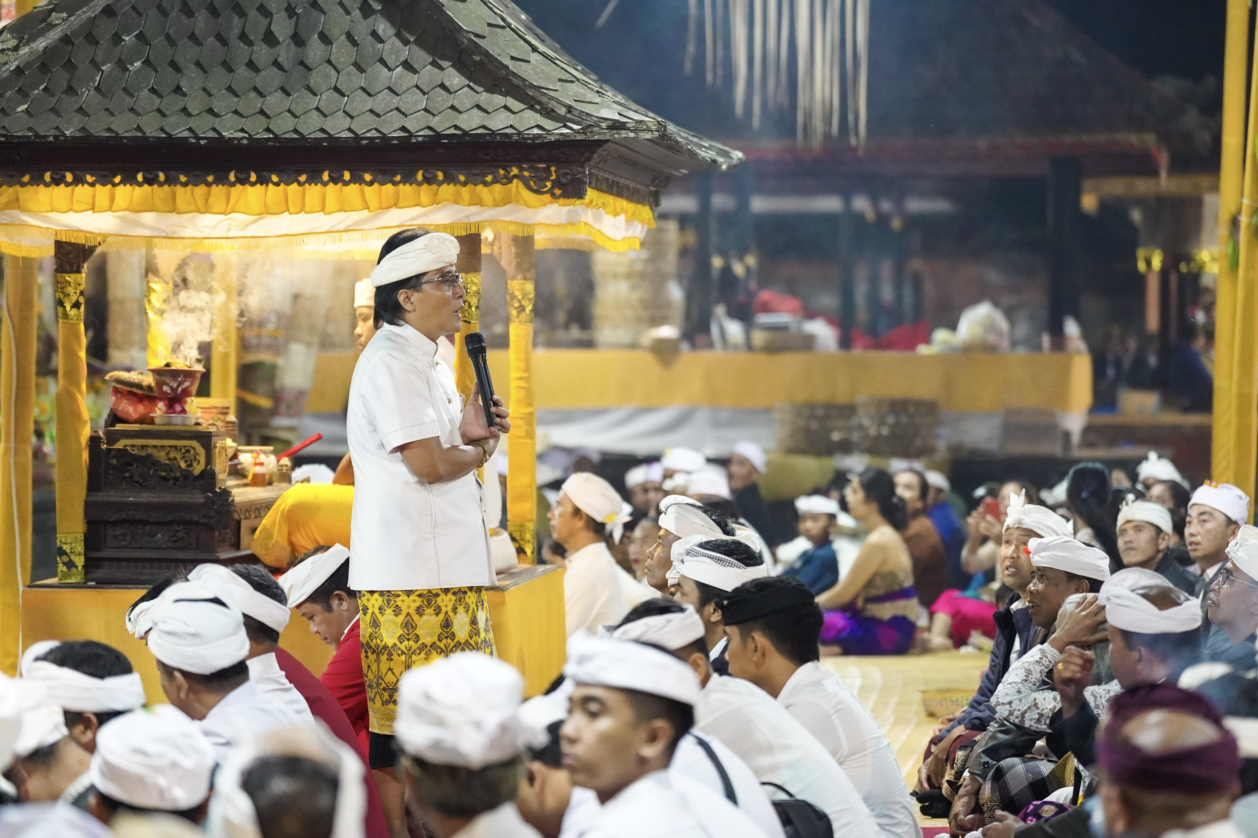 Bupati Giri Prasta mengucapkan rasa syukur kepada Ida Sang Hyang Widhi Wasa dan Ida Bhatara yang berstana di Pura Dalem Balingkang agar semua masyarakat diberikan keselamatan dalam melaksanakan pujawali ini.