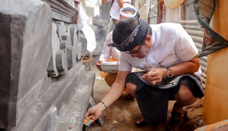 Bupati Badung, I Nyoman Giri Prasta, mendem pedagingan di Pura Dadia Pasek Gelgel Pegatepan, Banjar Lawak, Desa Belok/Sidan, Kecamatan Petang, pada Sabtu (1/10/2022).