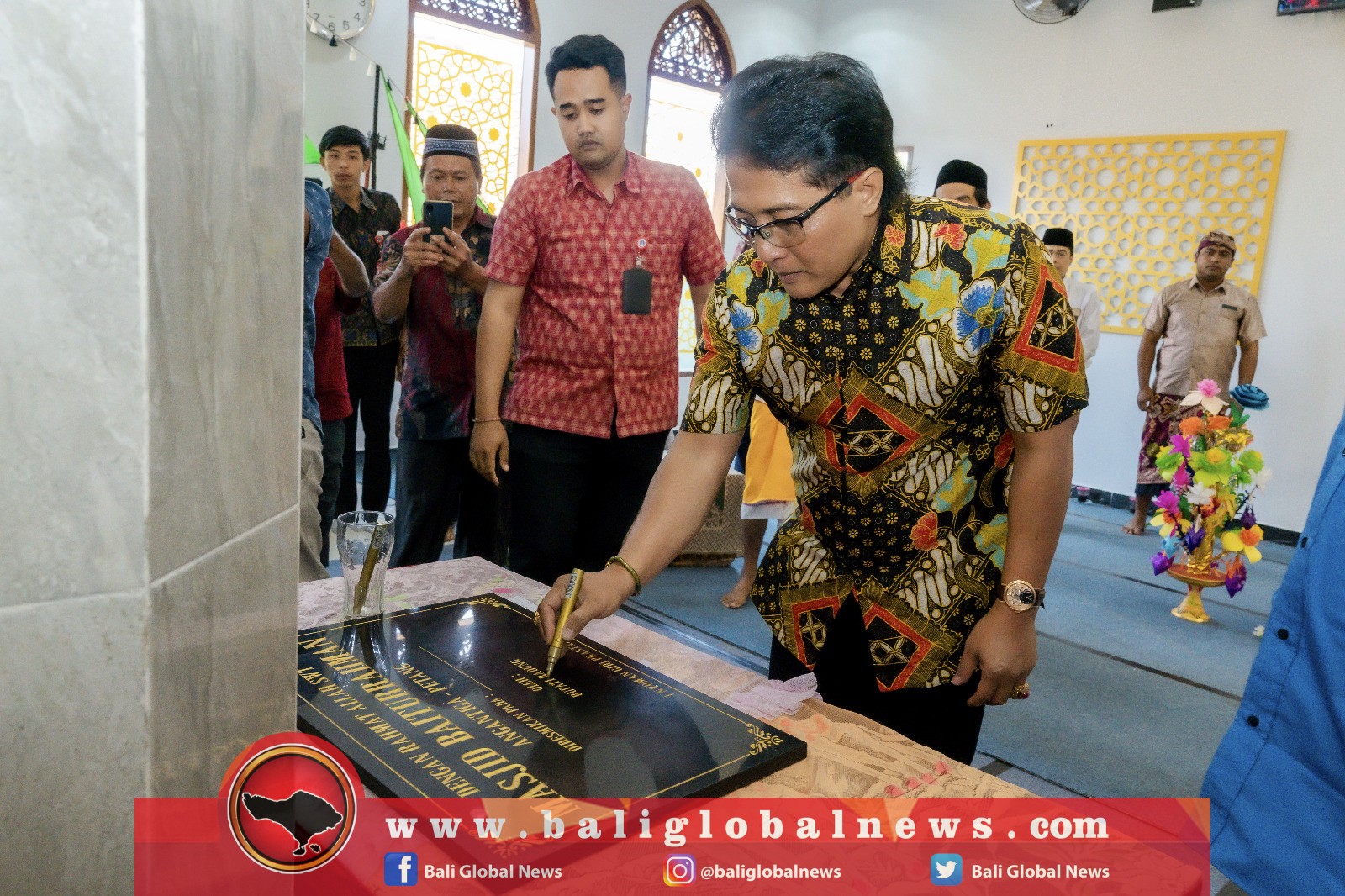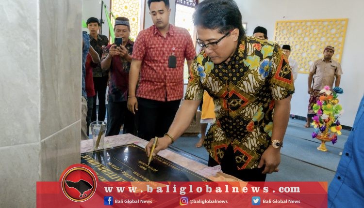 Bupati Badung, Nyoman Giri Prasta, menghadiri Peringatan Hari Raya Maulid Nabi Muhammad SAW 12 Rabi’ul Awwal 1445 Hijriah sekaligus meresmikan Masjid Baiturrahman Angantiga, Desa Petang, Kecamatan Petang, Badung, pada Selasa (26/9/2023) dengan menandatangani prasasti.