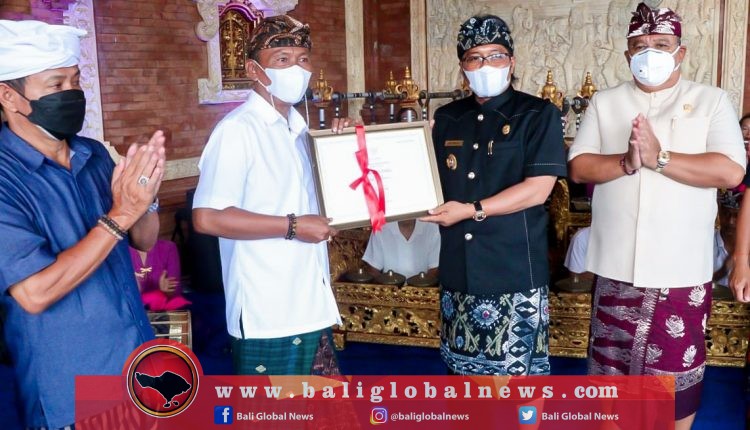 Bupati Giri Prasta Serahkan Sertifikat WBTB kepada Desa Adat Kapal dan Desa Adat Jimbaran