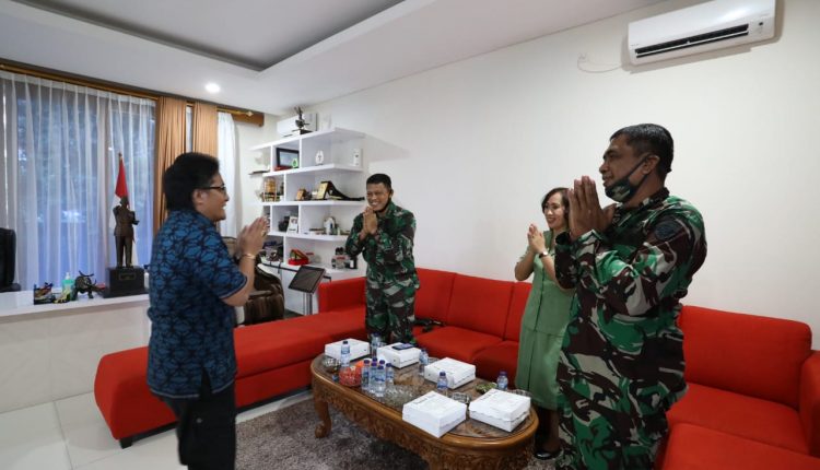 Bupati Badung, I Nyoman Giri Prasta, menerima kunjungan silaturahmi Dandim 1611 Badung, Kolonel Inf. I Made Alit Yudana, bersama istri yang menggantikan Kolonel Inf. Puguh Binawanto di Rumah Jabatan Bupati Badung, Senin (20/7).