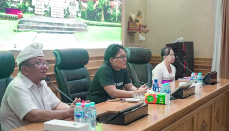 Bupati Badung, I Nyoman Giri Prasta didampingi Kepala BPKAD Ida Ayu Istri Yanti Agustini menerima Perkumpulan Wihara Umat Budha Banjar Dinas Tegeha, Desa Banjar, Kecamatan Banjar, Kabupaten Buleleng, di Ruang Rapat Rumah Jabatan Bupati, Puspem Badung, Rabu (8/5/2024).