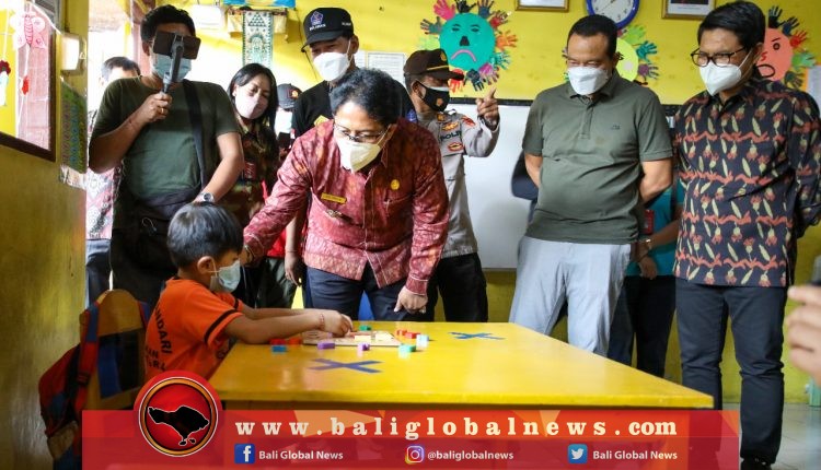 Bupati Badung, Nyoman Giri Prasta didampingi Sekda Wayan Adi Arnawa meninjau pelaksanaan PTM (pembelajaran tatap muka) terbatas di sejumlah sekolah wilayah Kecamatan Kuta Selatan, Kuta dan Kuta Utara, Jumat (1/10).Bupati Giri Prasta mengatakan Kabupaten Badung sudah sepakat melaksanakan PTM) mulai 1 Oktober dengan mengadopsi sejumlah penyesuaian, seperti durasi PTM terbatas bervariasi, mulai dari 1 jam hingga 2 jam, dimana pembelajaran di kelas hanya pemberian materi saja. Kemudian yang sifatnya praktik akan digelar secara daring.”Di seluruh Kabupaten Badung di 6 kecamatan bergerak bersama-sama mulai dari PAUD, TK, SD dan SMP. Para guru semua sudah dipastikan mendapatkan vaksinasi, anak-anak didik kami juga sudah melaksanakan prokes yang sangat ketat, karena setiap sekolah sudah menyiapkan sistem mitigasi.