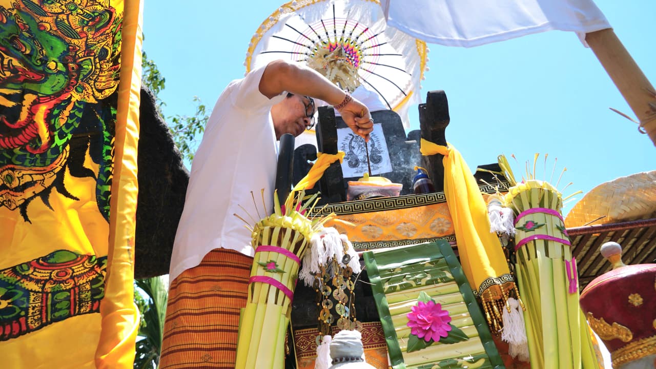 Pada upacara yang dipuput Ida Pedanda Nabe Gde Bang Buruan Manuaba dari Muding Kerobokan tersebut, Bupati berkesempatan mendem pedagingan di palinggih padmasana, sembahyang bersama, menandatangani prasasti dan meresmikan Monumen Kalpataru. Bupati juga menyerahkan secara simbolis bantuan hibah tahun 2024 untuk pembangunan pura Rp2,3 miliar dan medana punia Rp20 juta.