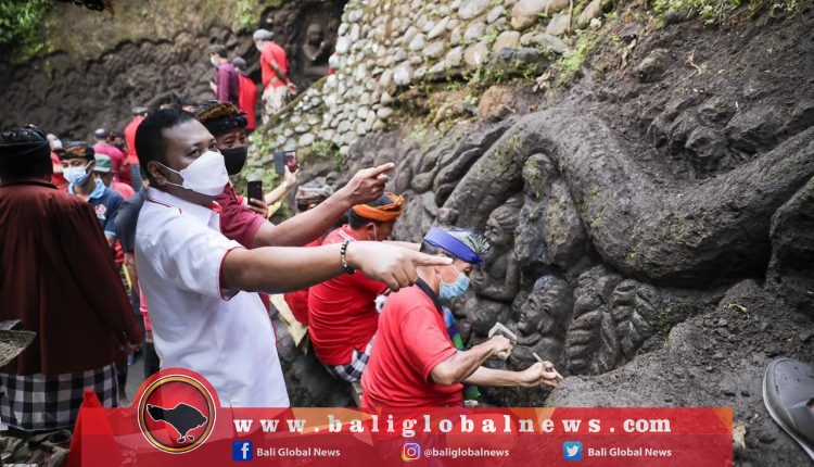 Bupati Mahayastra Meninjau Pembuatan Ukiran Relief di Pura Beji Dalem Jantur Mas, Ubud